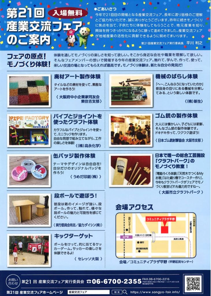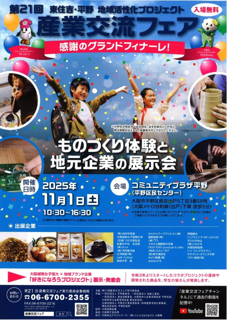 2025年11月1日(土)に今年で21回目になる『産業交流フェア』がコミュニティプラザ平野(平野区民センター)で開催されます!